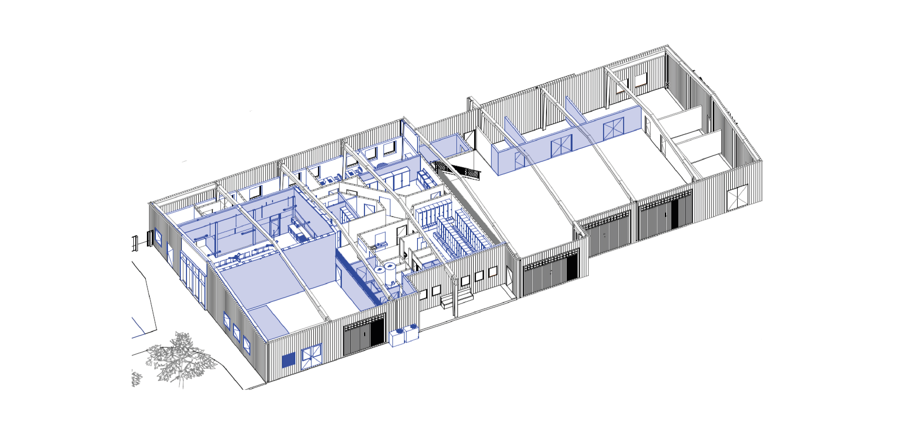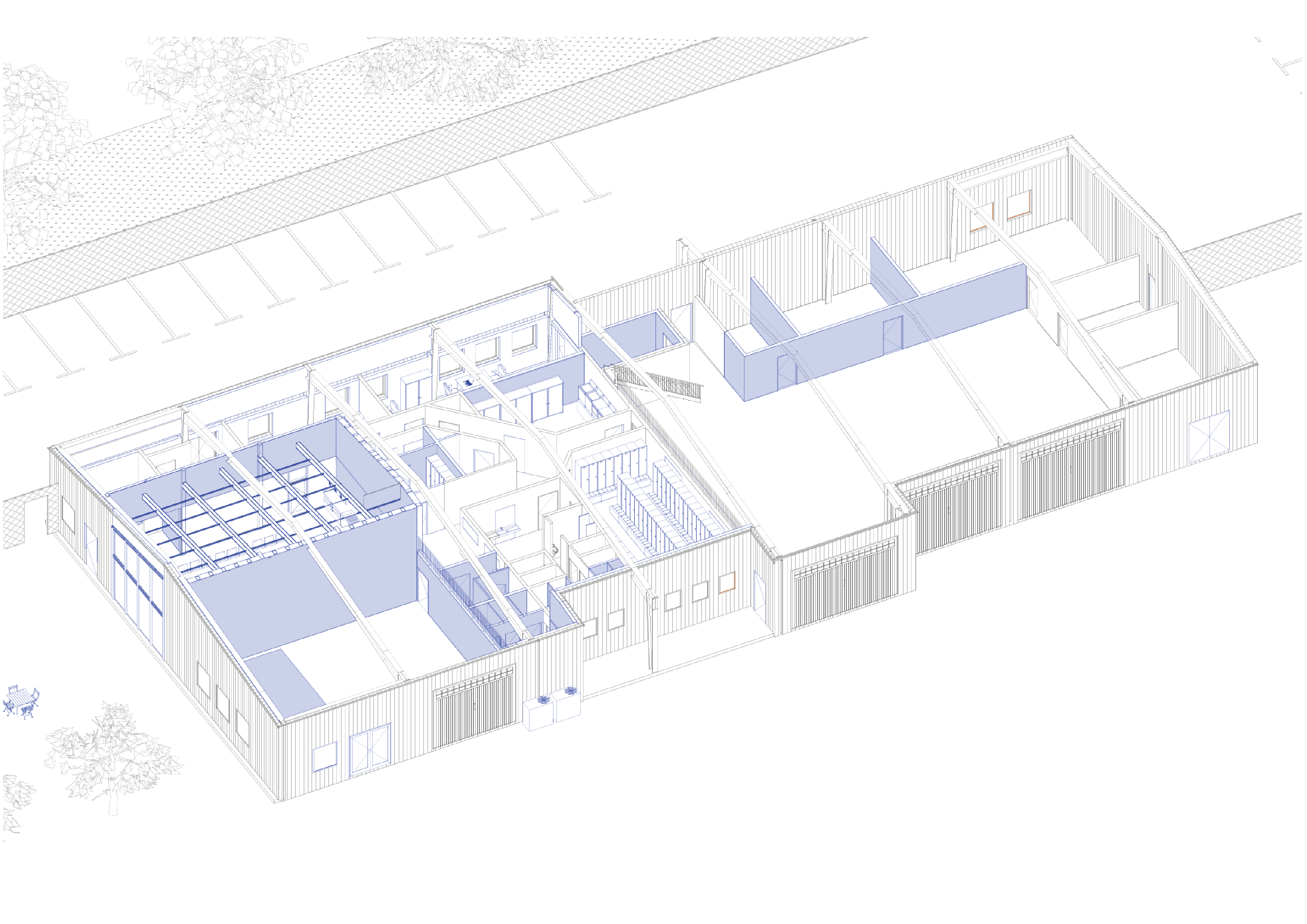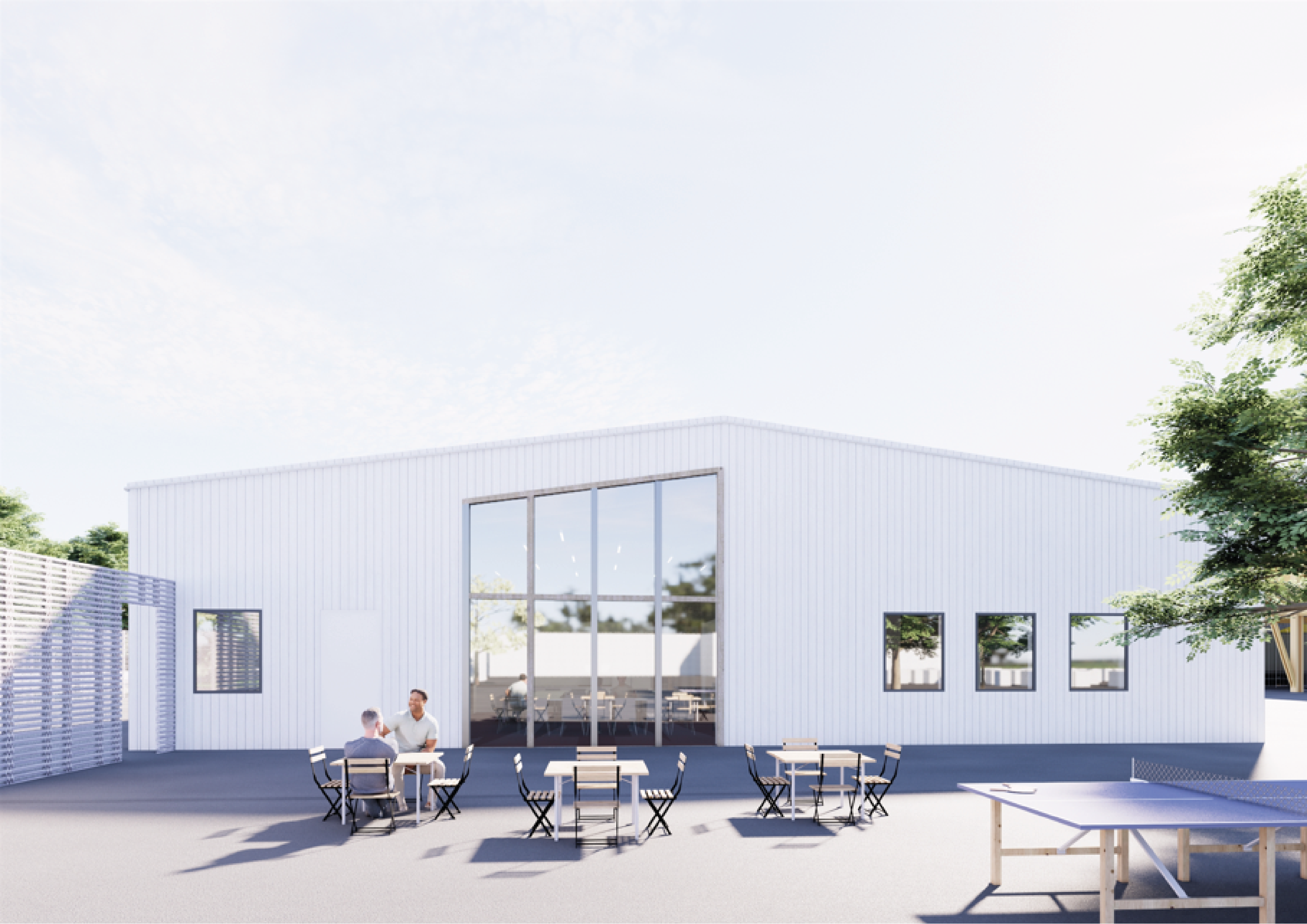 En plus de sa fonction de plateforme logistique pour les matériaux nécessaires aux travaux de voirie (bordures de trottoir, granulats, panneaux de signalisation…), le site est utilisé par les agents territoriaux matin, midi et soir pour s’équiper et recevoir les briefings en début de journée, se restaurer et se reposer lors de la pause méridienne, et se déséquiper le soir. En vue d’accueillir une dizaine d’agents supplémentaires, le site va être entièrement reconfiguré avec un redimensionnement et une réorganisation de tous les locaux de vie, le déplacement des zones de stockage, et la construction d’un abri semi-fermé. L’enveloppe de celui-ci sera constituée de panneaux de signalisation réemployés, sourcés sur la plateforme.