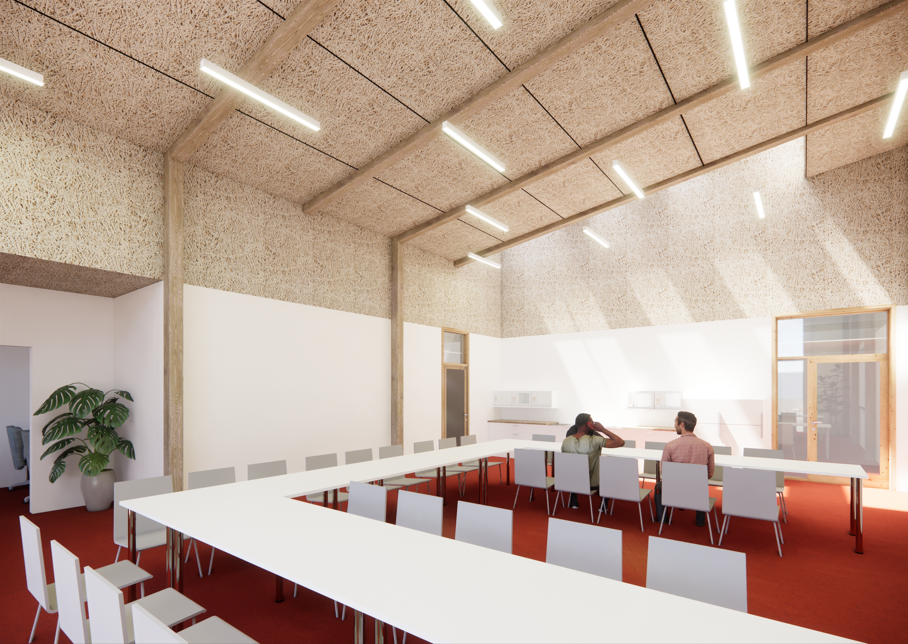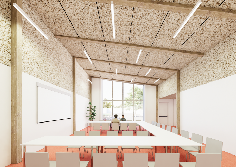 - Matériaux bio-sourcés (structure bois, panneaux acoustiques fibre de bois…)